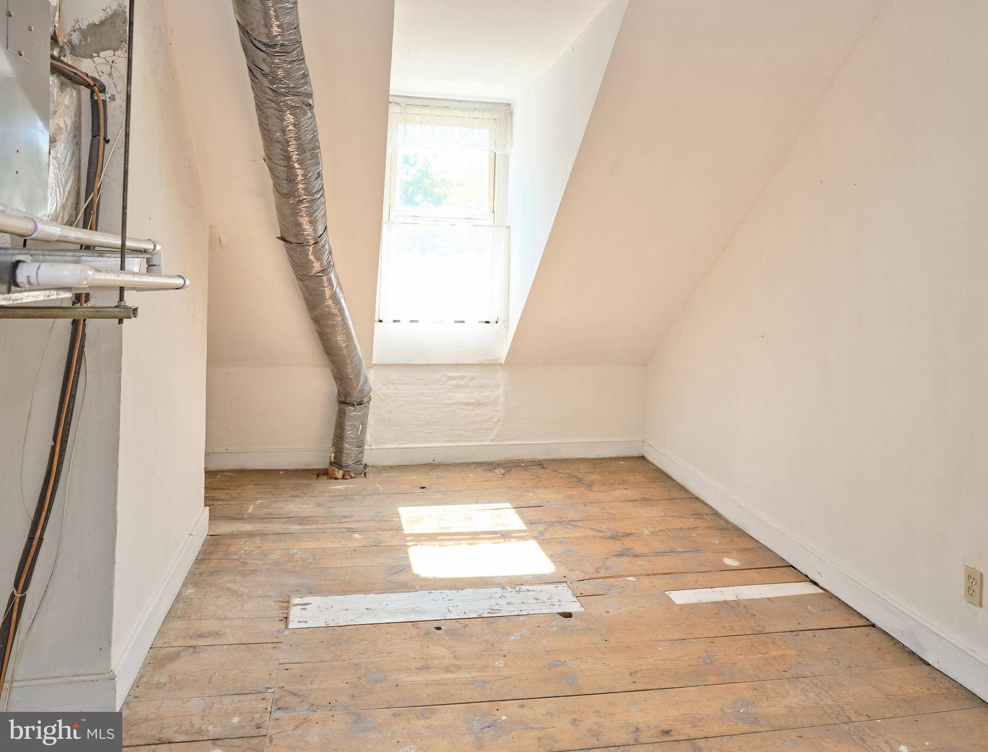 Originally constructed in 1834, consisting of stucco over stone, this handsome home had a 3 story addition in the 1880s, and a breakfast room addition in 1995. The property sits behind a gracious stone wall, accented by wrought iron fencing, with the lot stretching from Penn Street to Mercer Street - where access to the 2 story garage/barn is located. Ideally situated within walking distance to the heart of town - Starbucks is 2 blocks, Rocco's as well, and the ever popular Newtown Theatre is a 7 minute walk. The interior features a traditional floor plan. The living room has a gas fireplace, with a traditional mantel - in a style characteristic of vernacular Newtown style - as well as a built-in china cupboard. Wood floors are found in most of the public rooms - with the exception of the kitchen area, which features comfortable cork flooring. The dining room, part of the 1880s addition, is grand in size and one wall of stone indicates the exterior of the original 1834 construction. A large family room, with access to the rear brick patio, was originally the kitchen - based on the walk-in fireplace. The remnants of the beehive oven are clearly visible in this large fireplace. The kitchen is a gourmet delight - with Miele appliances, including 2 wall ovens, a warming drawer, dishwasher, side by side 48" refrigerator/freezer. A large island houses the gas cooktop and heavy duty drawers can hold an array of pots/ pans and small appliances. The cabinetry is custom with inset doors and soft close drawers. The 1995 breakfast room addition has atrium doors to the brick patio and features multiple skylights with remote controlled shades. This space also features the powder room and the laundry/butler's pantry/mud room. A back stairway off the kitchen leads to the bedrooms. There are 4 bedrooms on this upper level - all with wood floors. The primary bedroom features 2 closets. There are 3 additional bedrooms - one of which features 3 closets with built in drawers, and another with a cedar closet. Two full baths are located on this level - all with brass fixtures. One bath has a jetted tub with curved surround and a custom vanity recommissioned from an oak dresser, and the other bath features a walk in shower with seamless shower doors and a free standing sink with brass legs. The third floor has original flooring, plastered walls in the main room as well as a cedar walk-in closet, large mechanical/storage room, and spacious addition spanning the 1880 addition. This space would lend itself to a great bedroom suite.